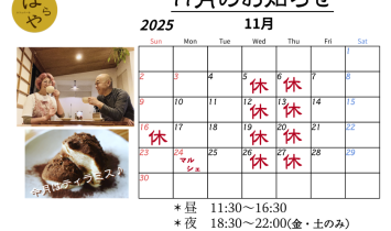 カフェバーる はらや 11月のお知らせよろしくお願いします…