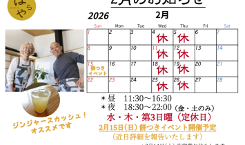 カフェバーる はらや 2月のお知らせよろしくお願いします…