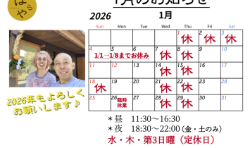カフェバーる はらや 1月のお知らせ今年もよろしくお願い致します1月9日(金) からの営業となります…